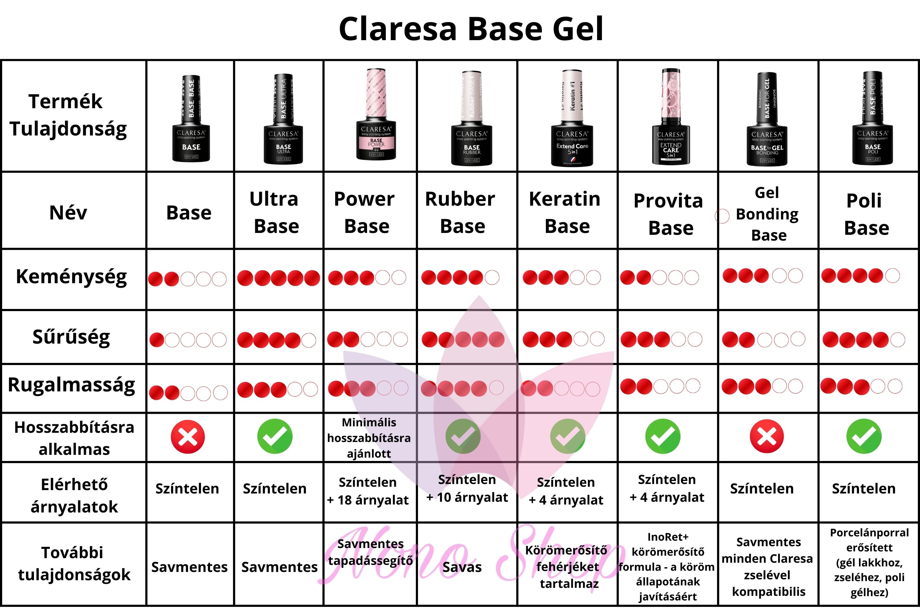 • Claresa Base gel-ek összehasonlítása