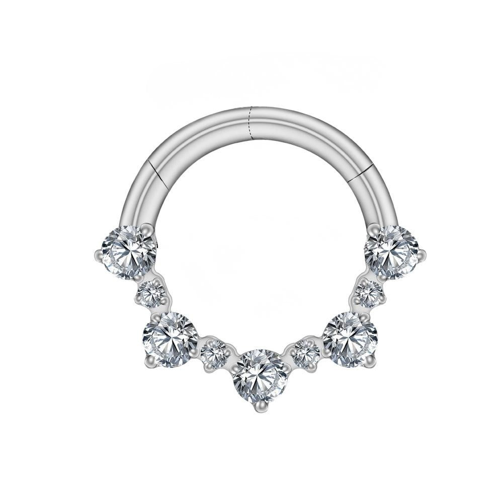 A piercing karika csuklós zárral rendelkezik, aminek köszönhetően nagyon egyszerű a használata. Egyszerűen felfelé kell húzni ahhoz, hogy kinyíljon, majd lefelé nyomni, hogy záródjon, Nem kell aggódni amiatt, hogy elhagyod, vagy a lefolyóba ejted az apró részeket. Zár típusa KapocsTípus Kapcsos karikaElhelyezkedés Fülcimpa, Tragus, Helix, Forward helix, Conch, Rook, Snug, Anti-tragus, Lower labret, Angelbite, Spiderbite, SnakebiteAnyag TitánKő típusa CirkóniaSzár vastagsága: 1,2mmKarika átmérője: 8mm