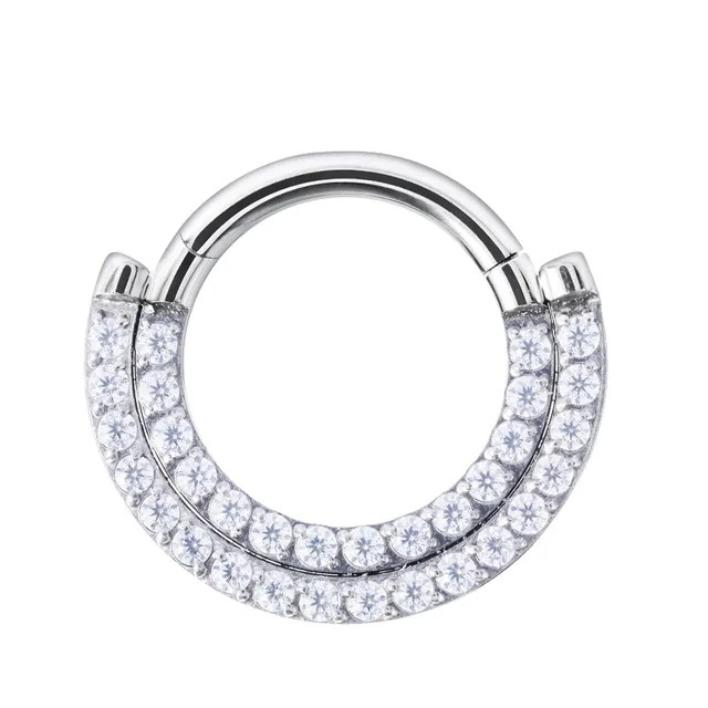 Ez a kapcsos titán karika előre néző, két sor kővel van kirakva, ezért tökéletes septum vagy daith piercingekhez.